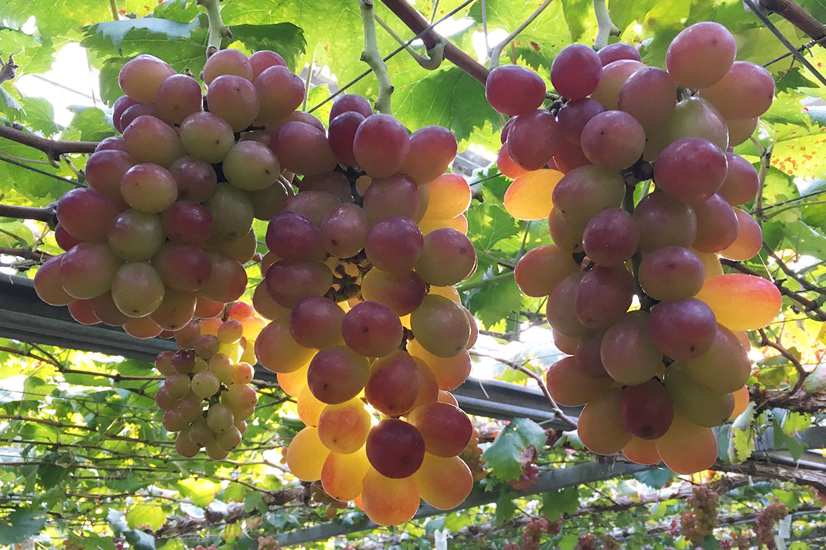 品質管理上ガラスハウスで栽培しています。ぶどうによっては色づきがうすいと感じるかもしれませんが、色による味・質・糖度に変わりはありません。安心してお召し上がりください。